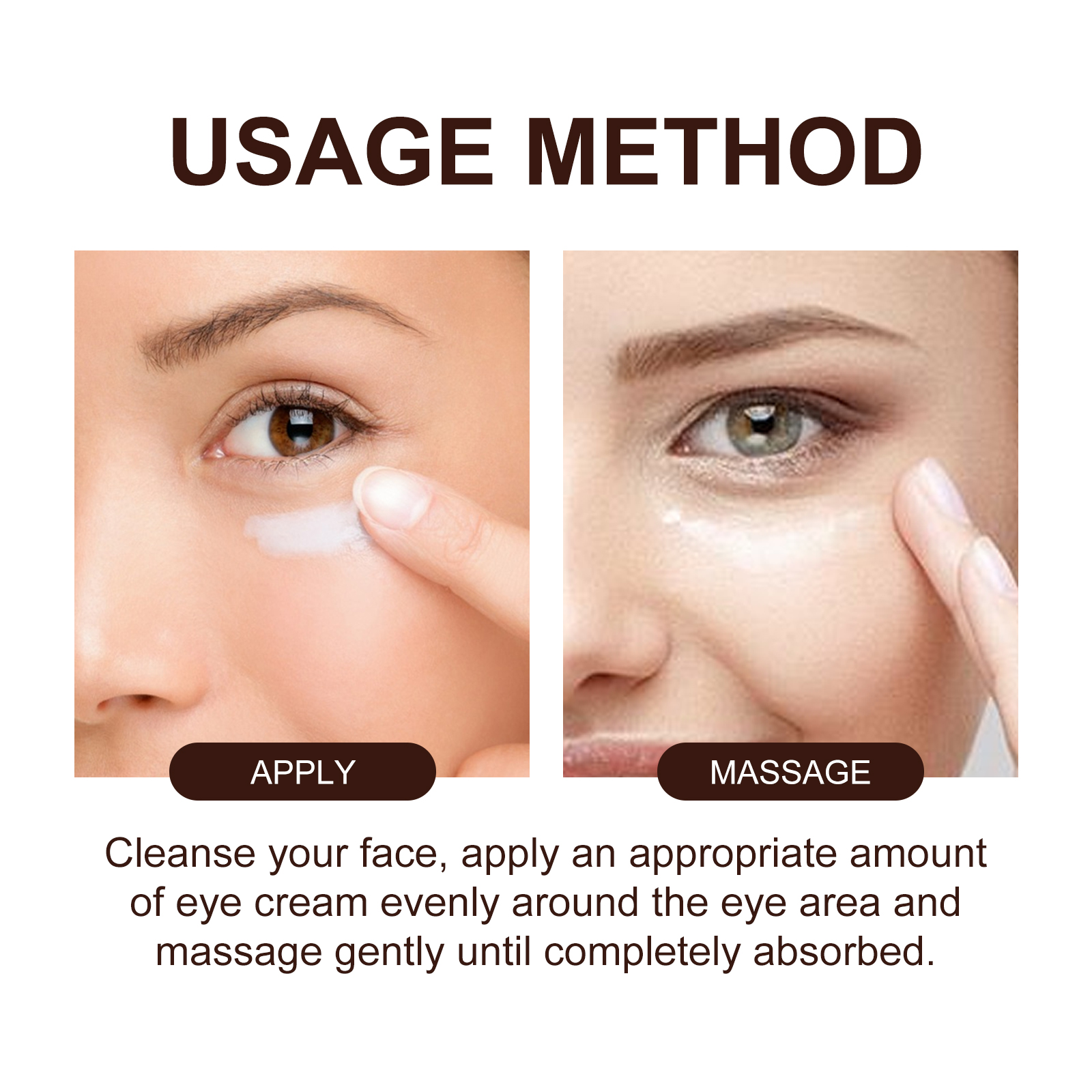 Our retinol eye cream contains retinol, arbutin and vitamin C. It can enhance skin elasticity, reduce fine lines, make the eye skin firmer, more youthful, long-lasting moisturizing effect, brighter and smoother, refreshing taste, not greasy. Its use method is very simple: after cleansing, take appropriate amount of eye cream evenly apply around the eyes, gently massage until completely absorbed. Retinol eye cream is rich in retinol, smoothing wrinkles, refreshing texture, not greasy, easy to be absorbed by the skin, can be used for daily skin care.