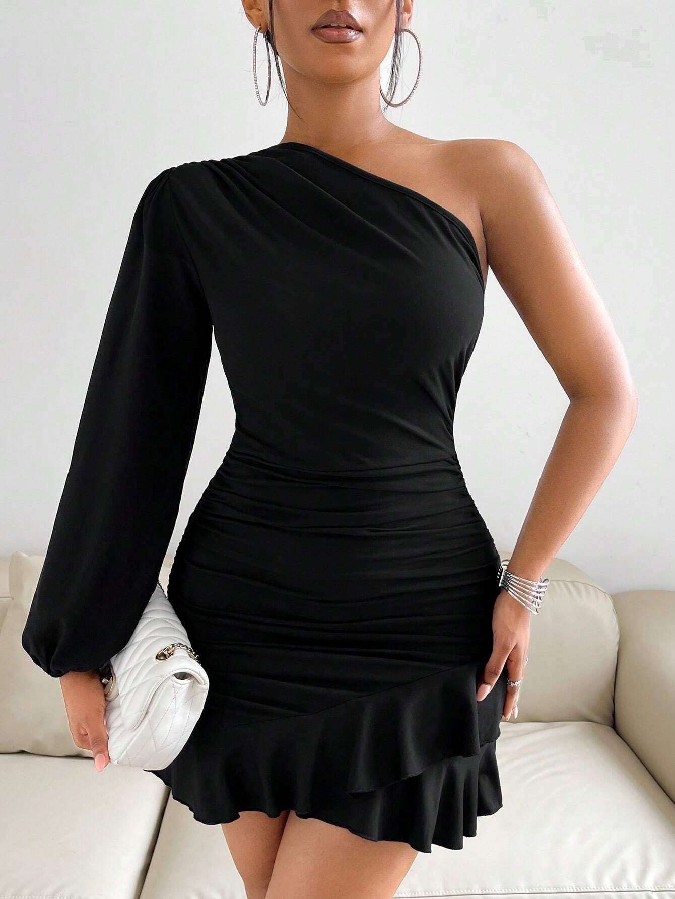Neckline: Slanted neckline