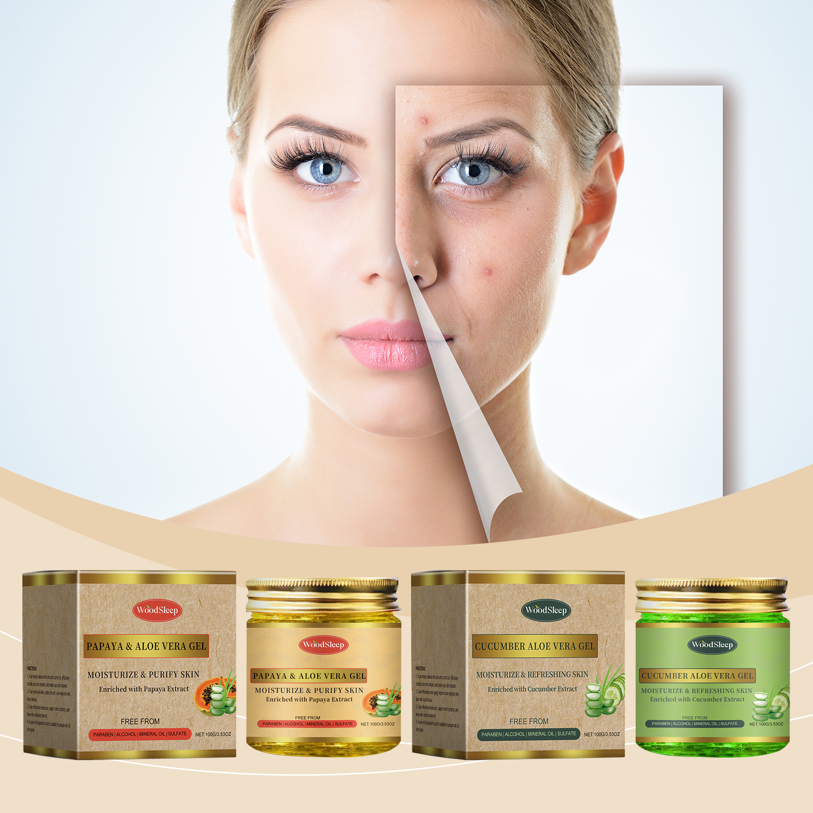 Our cucumber and aloe Vera hydrating gel is carefully formulated with aloe vera leaf extract and cucumber extract. Designed specifically for deeply moisturizing the skin and improving moisture. The usage method is extremely convenient: Thoroughly clean the skin and dry it. Take an appropriate amount of this product and apply it evenly to the facial skin. Gently massage to promote complete absorption. And it can balance oil secretion and improve oily skin.