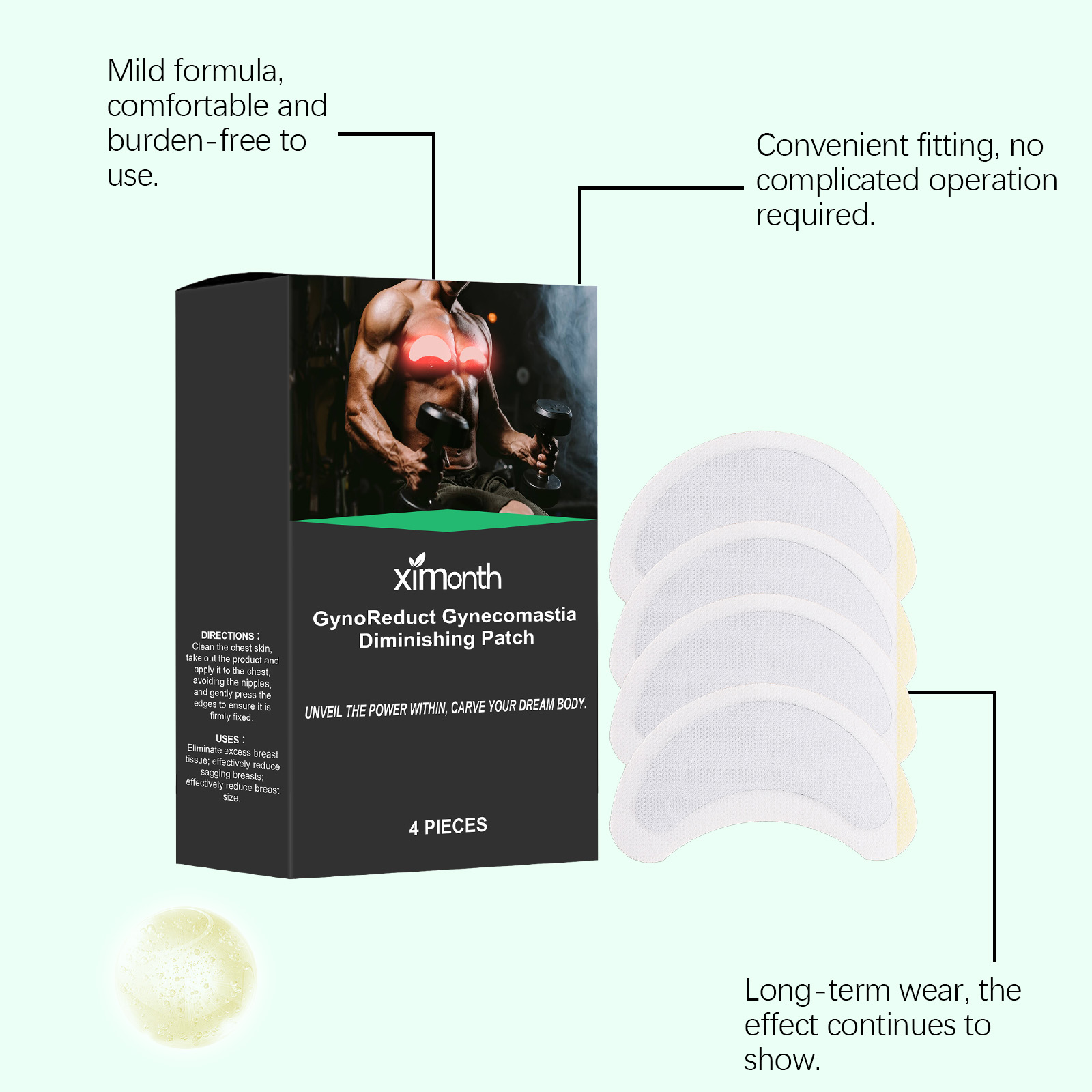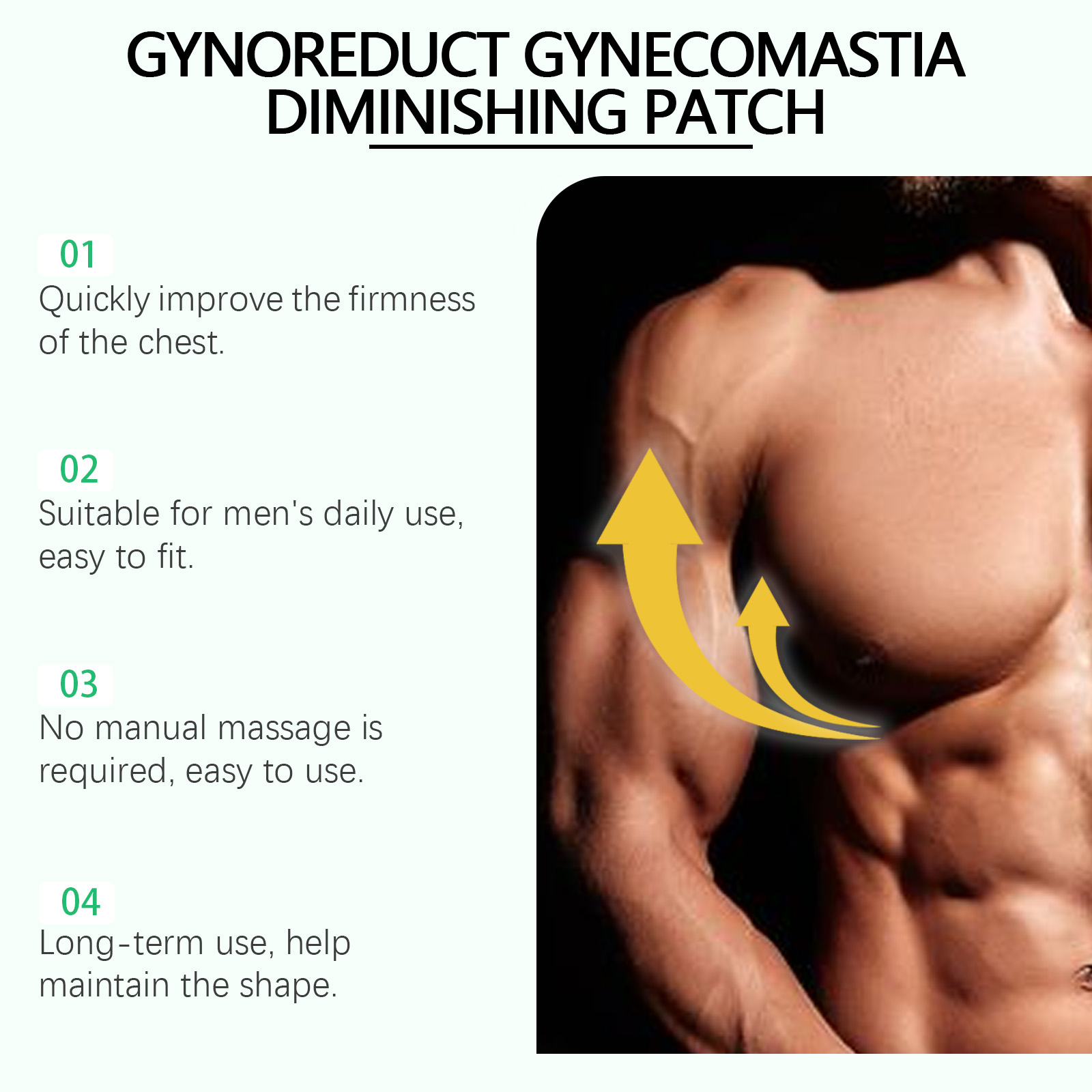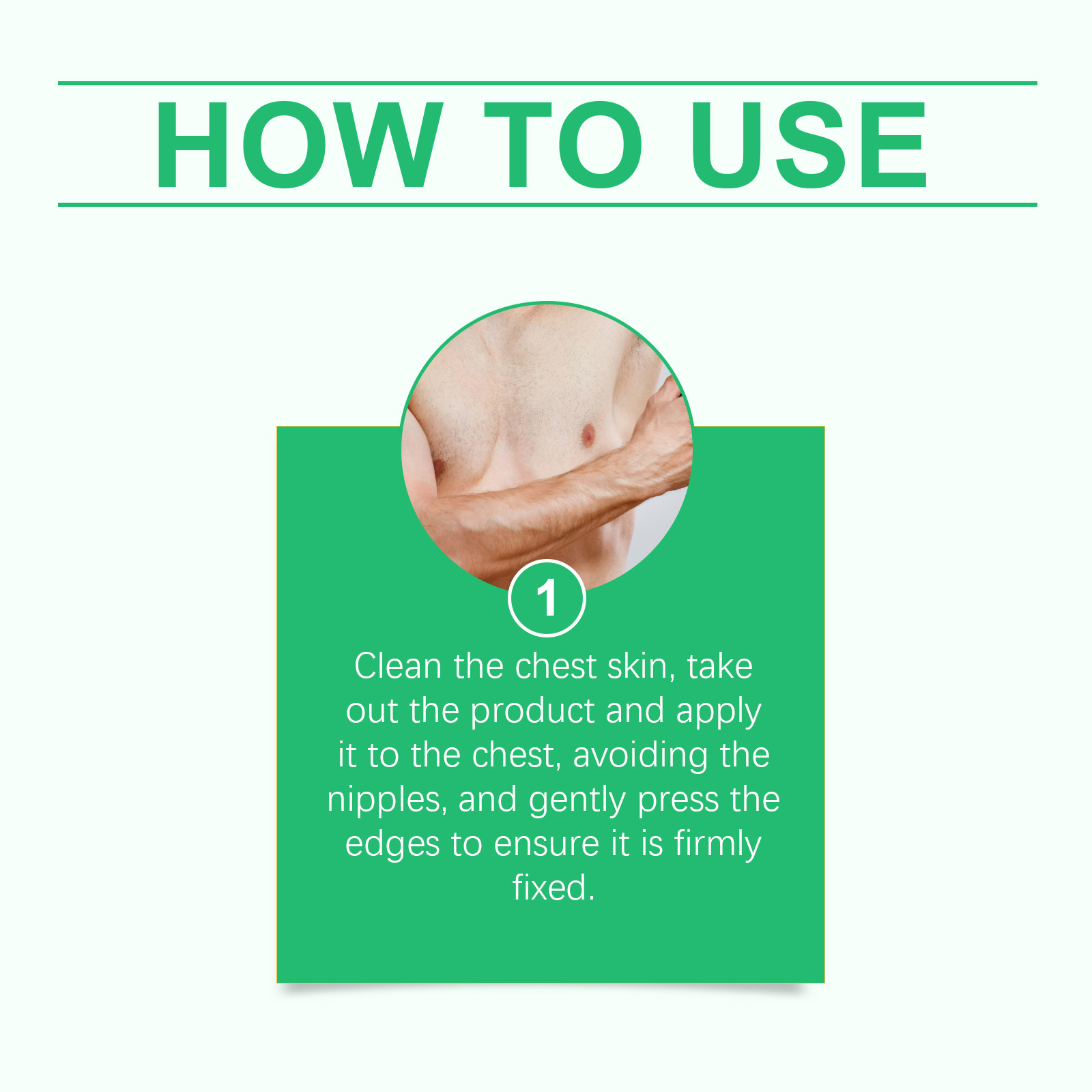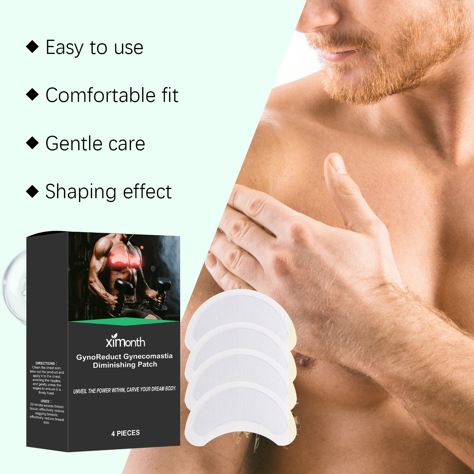 Our men"s chest patches contain liquid paraffin, microcrystalline wax and glycerin. It can promote collagen production, enhance skin elasticity and firmness. The way to use it is simple: clean the skin of the chest, remove the product and apply it to the chest, avoid the nipple, and gently press the edge to ensure that it is firmly fixed. And can be worn at any time, the effect is remarkable.