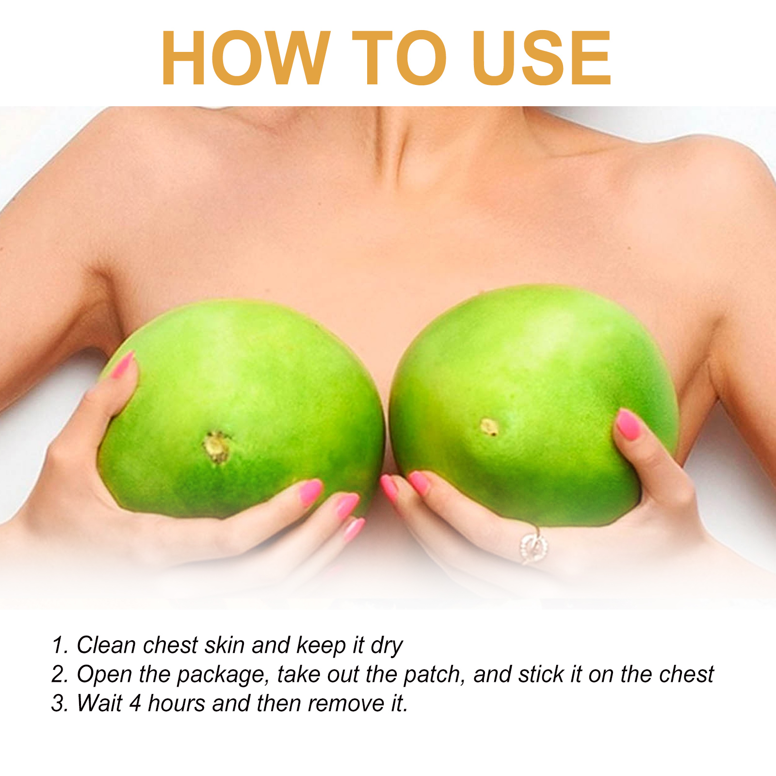 Our sculpting breast patches contain crystal collagen. It can help prevent sagging breasts, solve problems such as flatness, and make your breasts fuller. The way to use it is simple: 1. Clean the chest skin and keep it dry. 2. Open the package, take out the patch, and stick it on your chest. 3. Wait 4 hours and then remove it. And it can moisturize the breast skin, lighten the skin, and make your breast muscles whiter and more hydrated.
