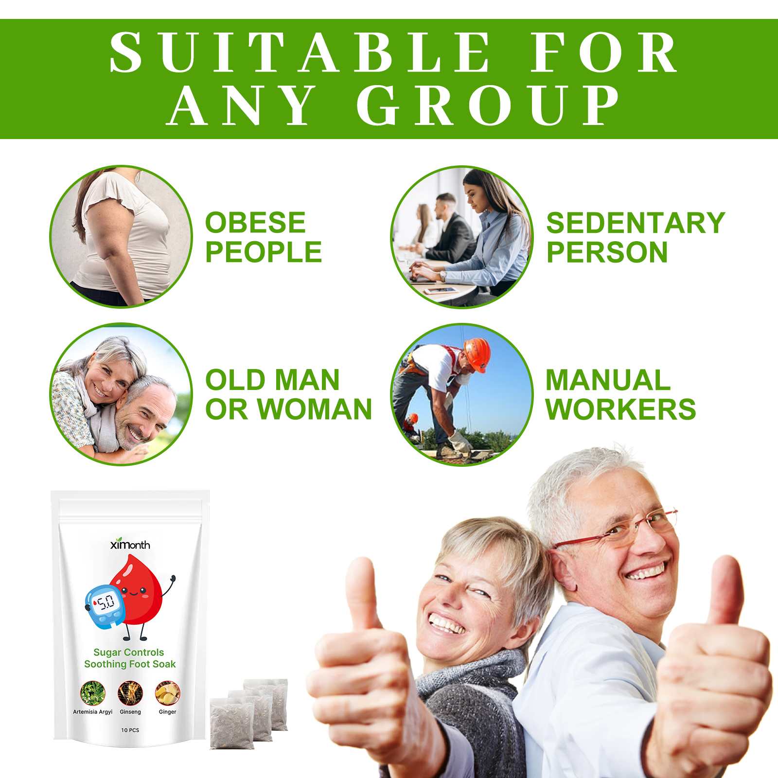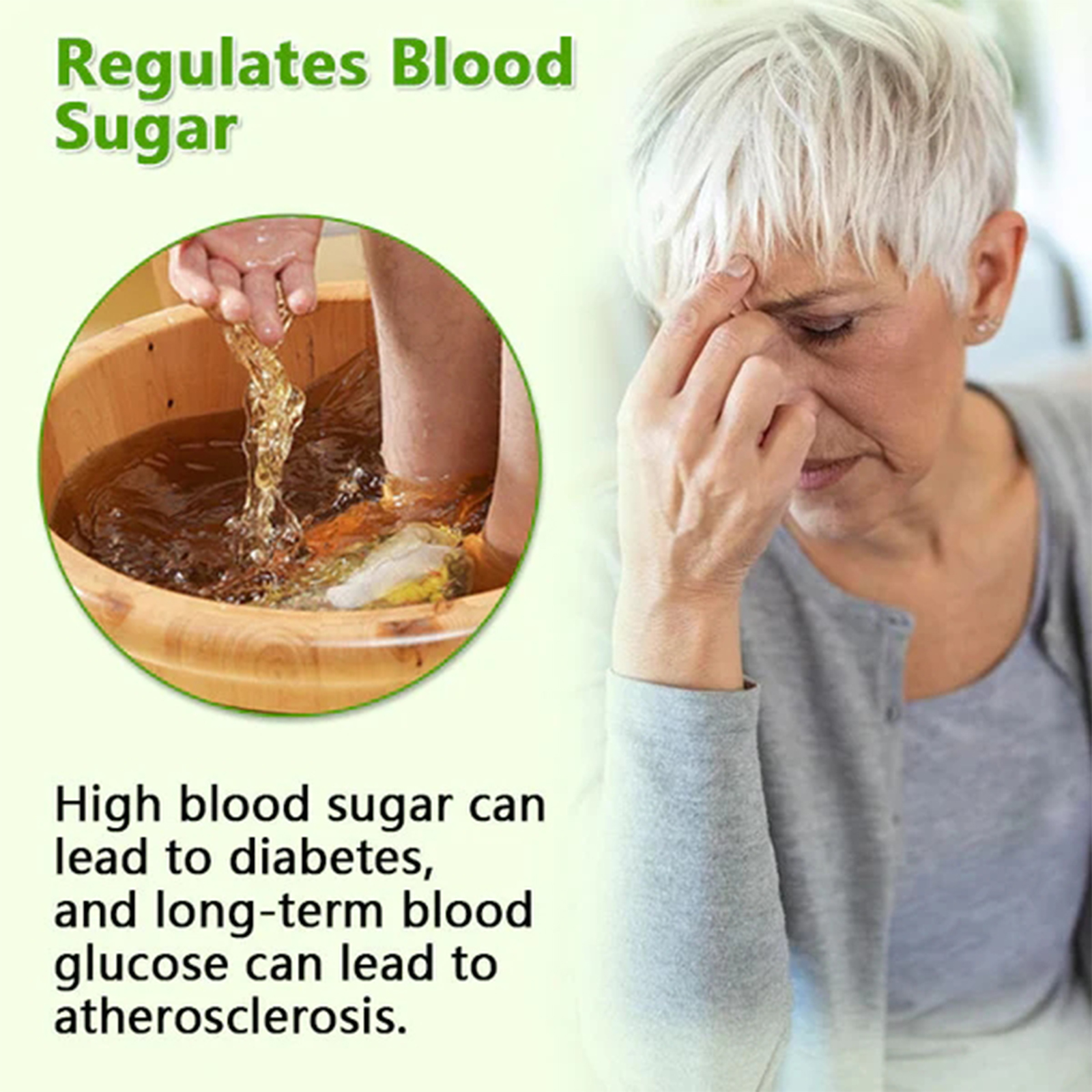Our sugared foot bath contains ginger and ginseng. It can relieve diabetes. Long-term blood sugar can cause atherosclerosis. Its use method is very simple: 1. Take a foot bath bag, put it in warm water, 2. Wait about 10 minutes, it will dissolve, 3. Soak your feet for 15-30 minutes, then rinse your feet with water. And can regulate blood sugar, improve blood circulation.