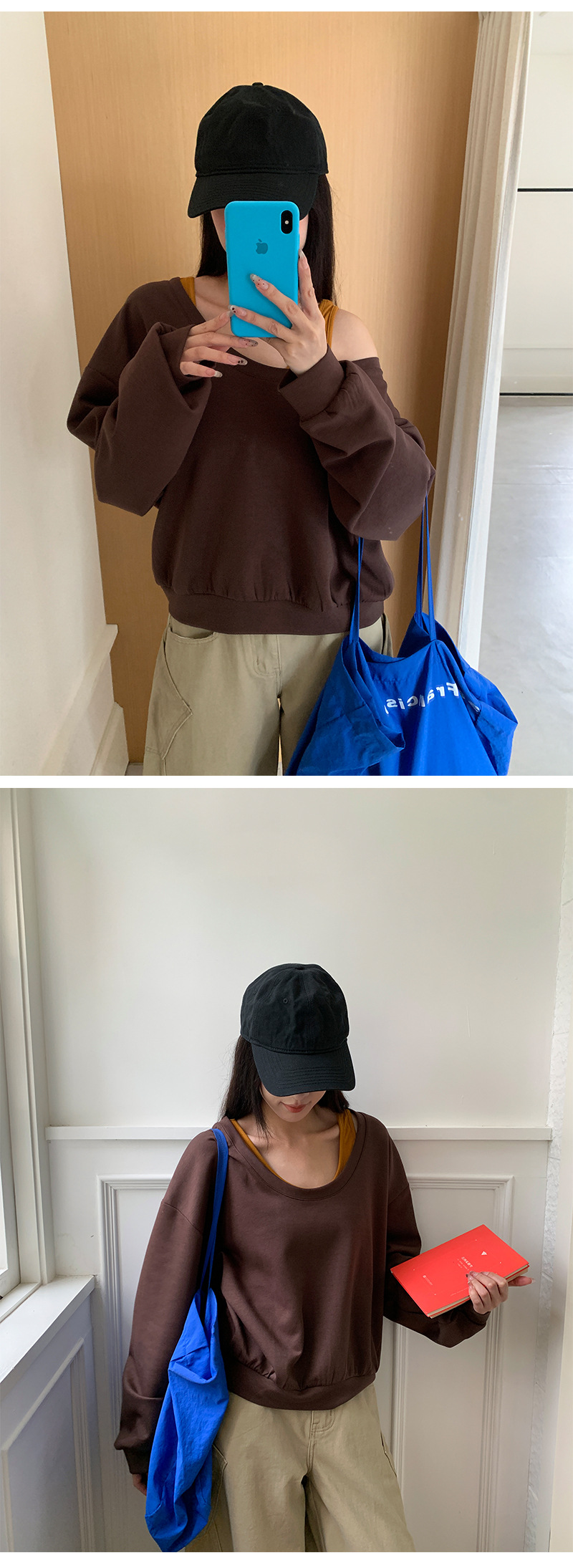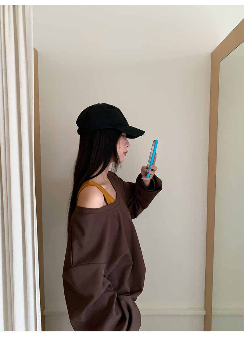 Neckline: Slant neck