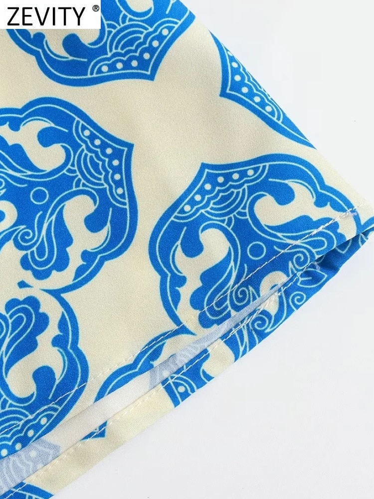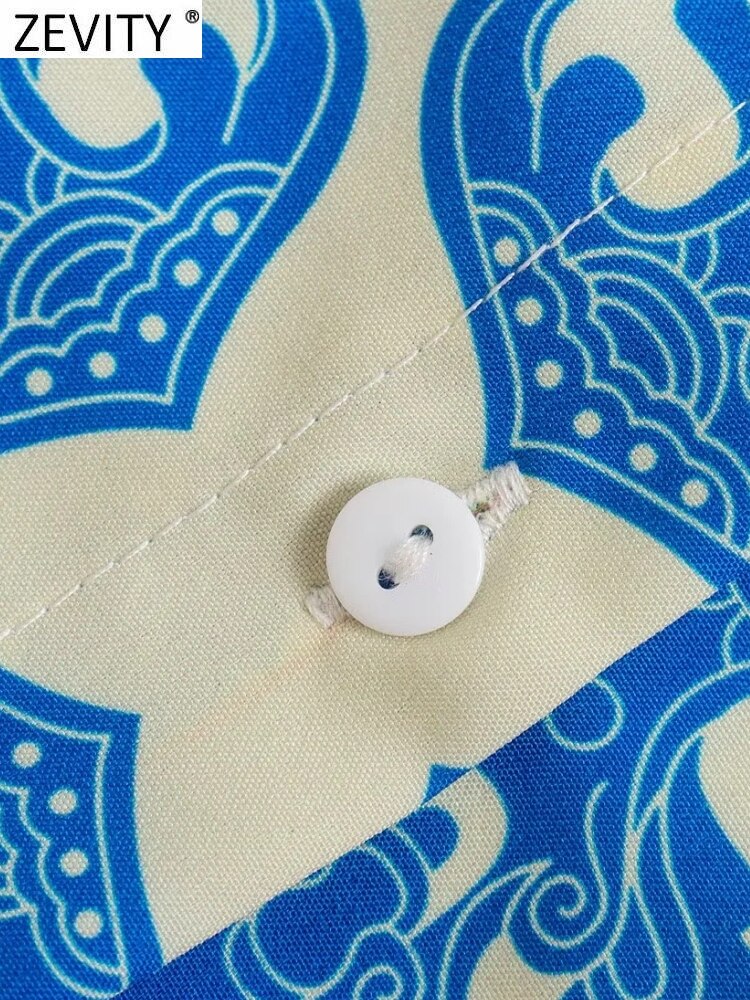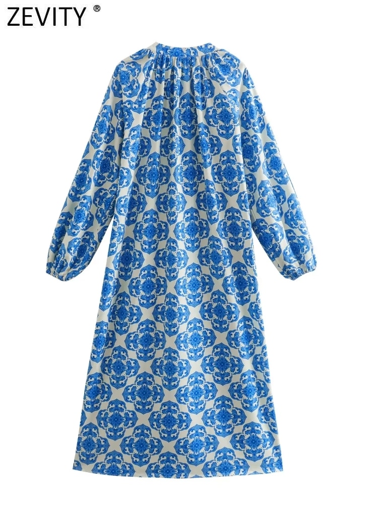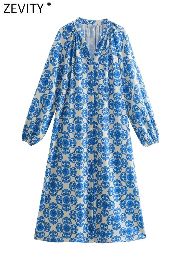 Women Vintage Totem Floral Print Single Breasted Casual Midi Shirt Dress Female Chic V Neck Long Sleeve
