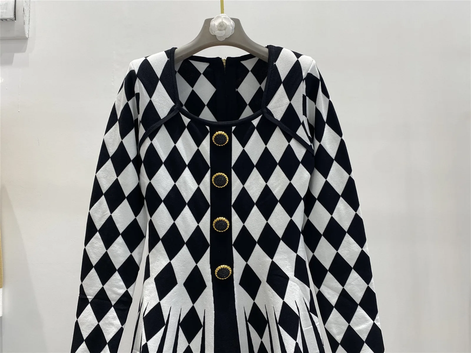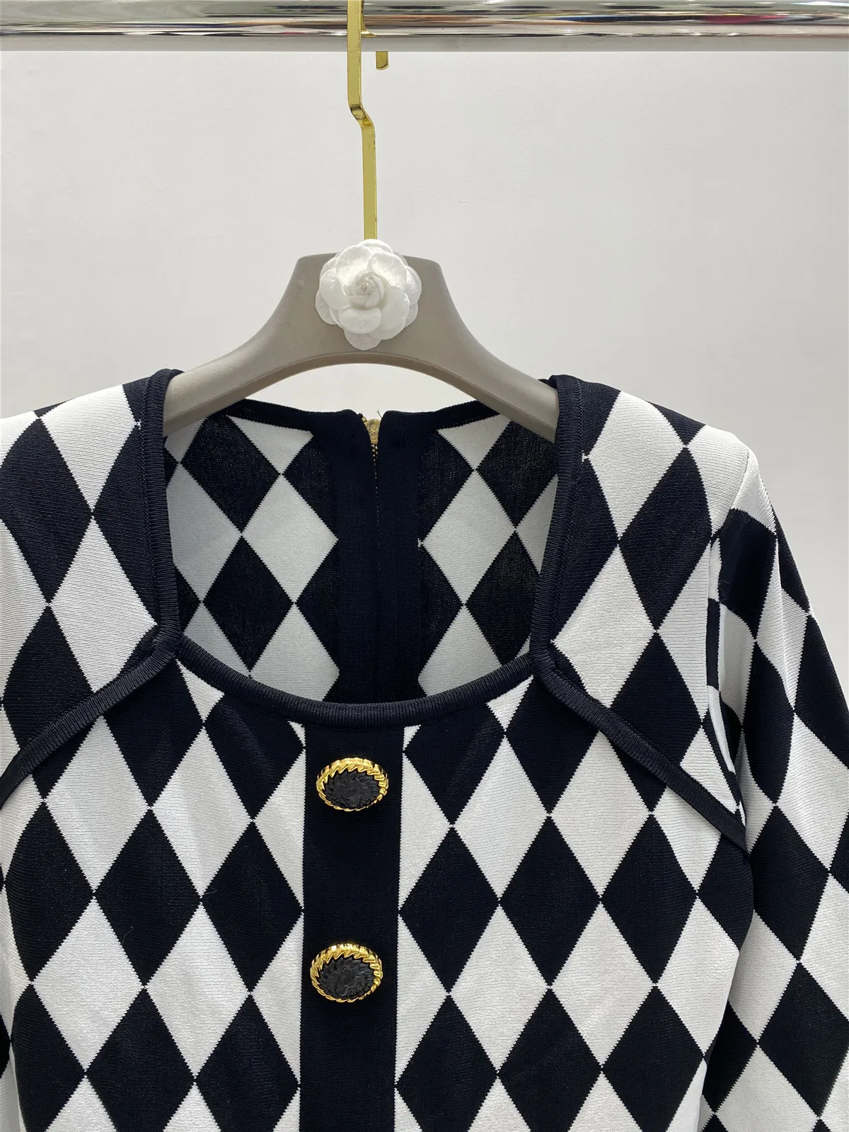 -Neckline: Square collar